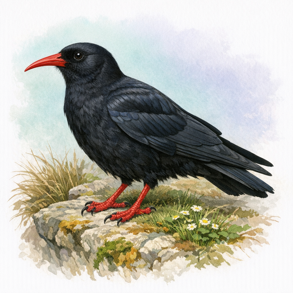 The Isle of Man's national bird and one of its last UK strongholds. Feeds on invertebrates in cliff-top grassland. Vulnerable to agricultural intensification reducing foraging habitat.