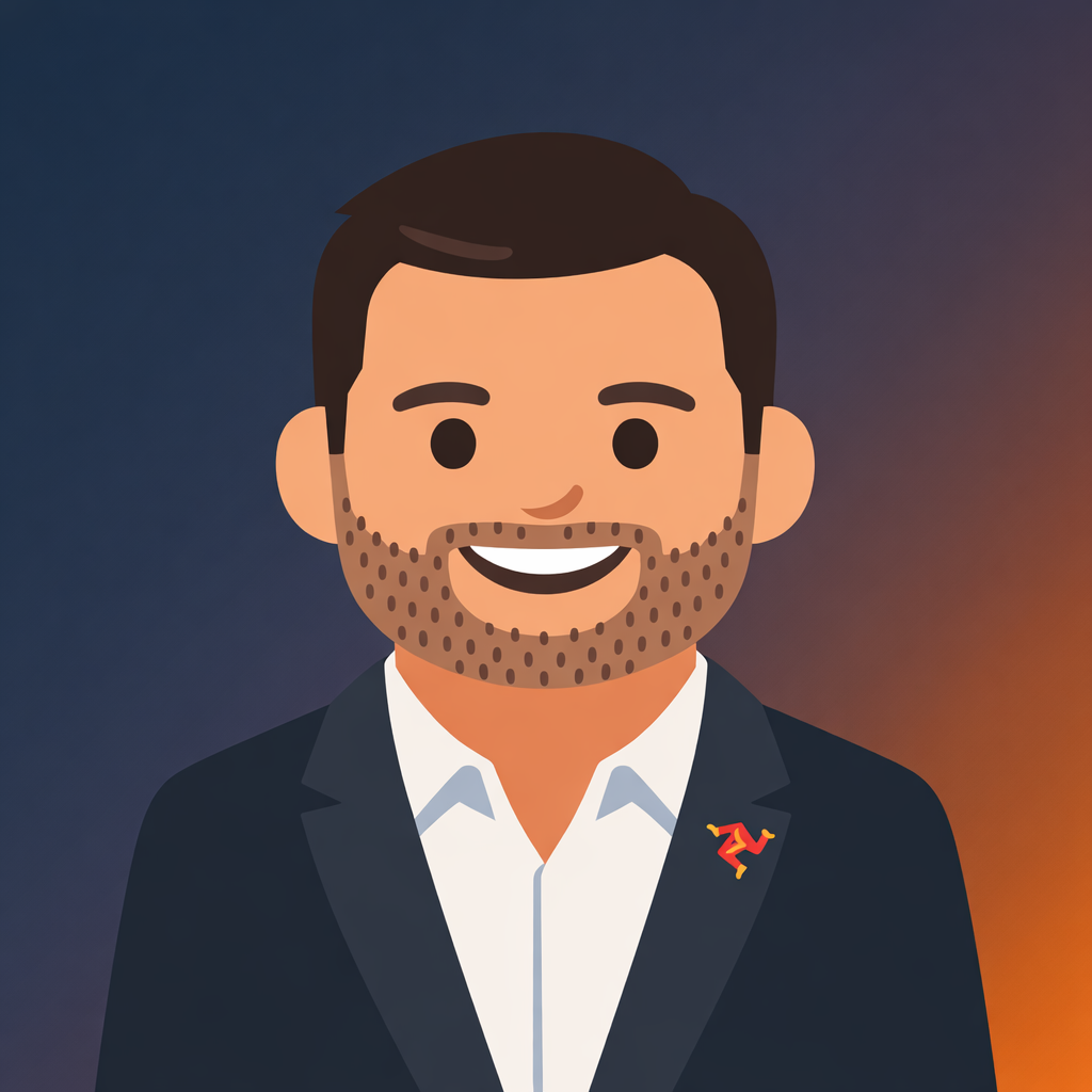 Born in Rushen in 1968. Proud Manxman who grew up in the southern parishes and lives in the heart of Port Erin. Diverse career: farm work, power station operator (Ramsey, Peel, Pulrose), then trained as a tattooist and founded Manx Tattoo Ltd on the Douglas high street — a VAT-registered business supporting four local families for 15 years. Now stepping back to stand for election. Passionate about voter engagement and democratic accountability. Values honesty, fairness, patience, and community listening. Interests include fishing, boat angling, sea kayaking, gardening, wood turning, clay and ceramics, clay pigeon shooting, motorcycling, and collecting cacti and succulents. Father of one adult daughter, grandfather to a nine-year-old.